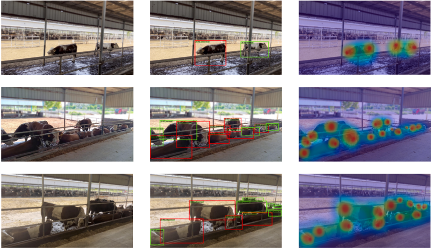 肉牛的健康監(jiān)測是推動(dòng)肉牛行業(yè)向“高效、安全、可持續(xù)”轉(zhuǎn)型的關(guān)鍵支撐。在健康監(jiān)測中,呼吸急促在牛中常與熱應(yīng)激、呼吸道疾病或代謝異常相關(guān),流涎行為常與口腔疾病、中毒或神經(jīng)系統(tǒng)異常,所以對呼吸急促和流涎行為的檢測較為重要。然而,肉牛養(yǎng)殖密度大、遮擋嚴(yán)重,現(xiàn)有算法存在檢測精度低、計(jì)算冗余等問題。
