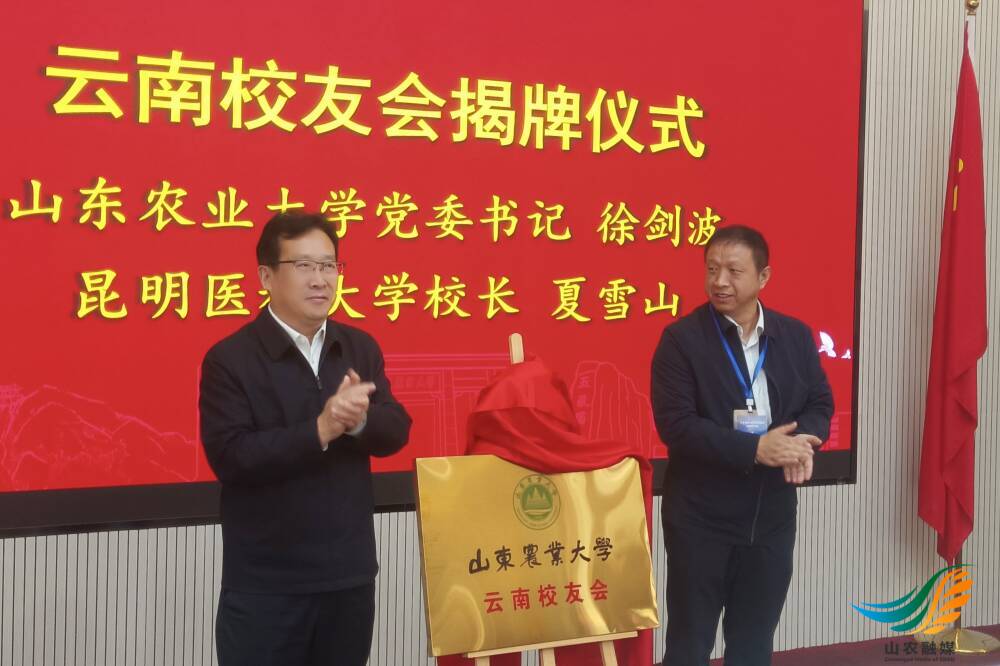 山農(nóng)融媒10月28日訊 近日,山東農(nóng)業(yè)大學云南校友會換屆大會在昆明市舉辦。學校黨委書記徐劍波,昆明醫(yī)科大學校長、我校1992級土壤化學與植物營養(yǎng)專業(yè)校友夏雪山為山東農(nóng)業(yè)大學云南校友會揭牌,并向新一屆理事會成員代表頒發(fā)了聘書。學校黨委副書記嵇景濤參加相關(guān)活動。